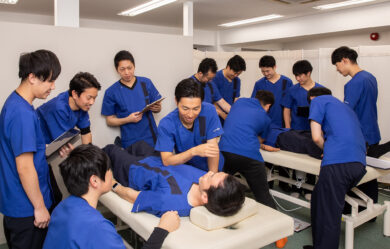 実際の「社内研修」プログラムでは、まず午前中に姿勢の制御など理論の詳細を講義と質疑応答で相互にやり取りしておいて、午後はグループ3人程度に分かれ1人をモデルにどんどん実技を行っていきます。その間、私が個々のグループを回ってチェックと質疑応答をしながら、現場で困っていることに対してアドバイスしています。そして、最後に全グループが発表して成果を全員で共有するわけです。一方、「臨床座談会」ではオンラインで施術例研究を行い、実際の施術例に関する相談にアドバイスして、翌月その結果を報告してもらいながら内容を深めています。